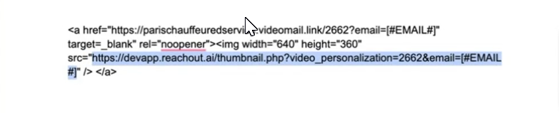 Now copy this part of the platform's Campaign code and paste it in the autoresponder as the source of your image (so the thumbnail works in the email).