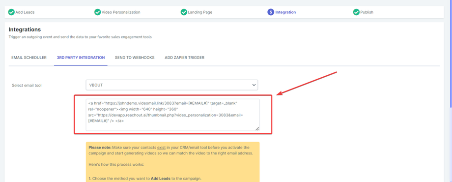 Copy this code from the integrations section of the platform's campaign into a separate word document or notepad.