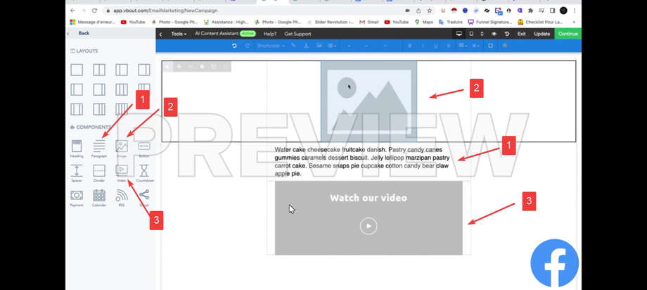 - In your autoresponder, choose to build the layout of your email yourself and then you can use an image, HTML (paragraph) or a video element to link back to your platform's landing page.