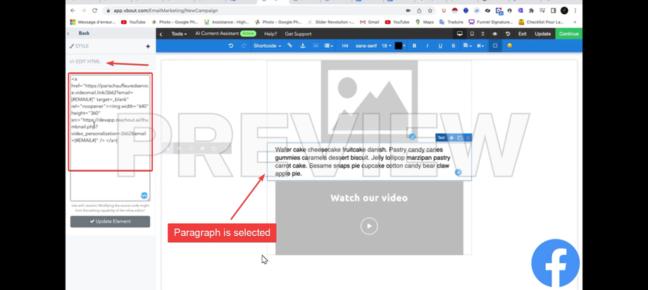 To make it work using the “paragraph” component, just edit the HTML and paste the platform's campaign’s code into it.