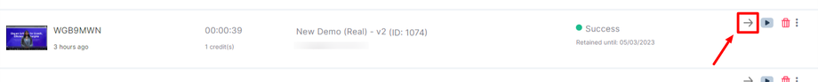 Once the video is generated, you can visit the 'Library' on the platform's dashboard and click on the arrow button to go to the landing page where the video generated with the transition video will be available for you to see.